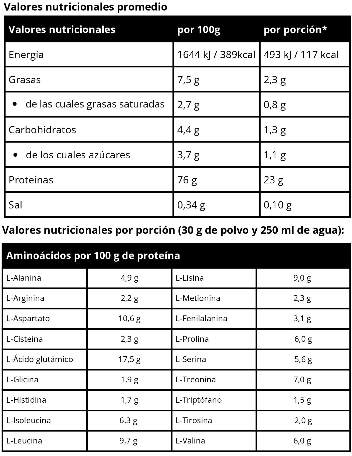 - Rica en aminoácidos esenciales y de cadena ramificada (BCAA).